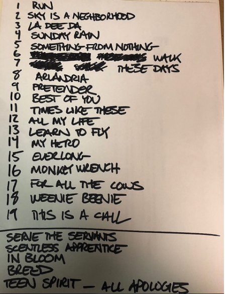 Nirvana revivió en el Cal Jam Festival La noche del pasado sábado 6 de octubre, Foo Fighters se presentó en el festival Cal Jam en California y se dio una reunión con ex integrantes de Nirvana. El mismo Dave Grohl había insinuado este encuentro con algunos comentarios en las redes sociales y así sucedió, se volvió a reunir junto a Krist Novoselic y Pat Smear para tocar algunos clásicos de Nirvana. Joan Jett se unió a la voces como haría anteriormente en la presentación del salón de la Fama del Rock & Roll en 2014. Aquí dejamos el setlist que subió la banda a las redes sociales y algunos vídeos de esta histórica reunión.