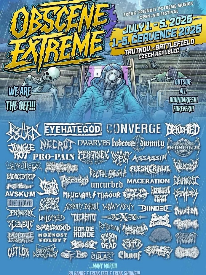 El Obscene Extreme Festival ha anunciado oficialmente el cartel completo de su edición 2026, consolidando una vez más su estatus como uno de los eventos imprescindibles del calendario internacional del metal extremo. La próxima edición se celebrará del 1 al 5 de julio de 2026 en su ya habitual emplazamiento, el Battlefield de Trutnov (República Checa).
