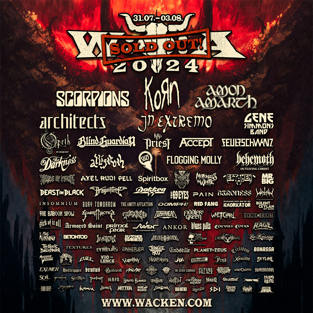 Wacken Open Air 2024 Cartel y Entradas Wacken del 31 de julio al 3 de agosto El mundo del metal está listo para vibrar nuevamente con la emoción del Wacken Open Air, el festival de música más emblemático de Alemania que nuevamente se encuentra Sold Out. Desde el 31 de julio hasta el 3 de agosto, la tranquila localidad de Wacken, situada en el norte de Alemania, se convertirá en el epicentro mundial del metal, atrayendo a fanáticos y bandas de todo el planeta. Con una trayectoria de más de tres décadas, el Wacken Open Air se ha ganado una reputación legendaria por sus impresionantes actuaciones en vivo, su ambiente de camaradería y su devoción al metal en todas sus formas. Este año, el festival promete superar todas las expectativas con un cartel repleto de las bandas más influyentes y emocionantes del género, puedes ver la galería de fotos del 2023 aquí. Desde los clásicos del metal hasta las nuevas revelaciones, el Wacken Open Air ofrecerá una experiencia única para los fanáticos de todas las edades. Además de la música, el festival contará con actividades interactivas, mercadillos de artículos relacionados con el metal y una atmósfera inigualable que hace que cada año los asistentes regresen por más. Con la seguridad como prioridad, el equipo detrás del festival está trabajando diligentemente para garantizar que se implementen todas las medidas necesarias para un evento seguro. Desde protocolos de salud hasta opciones de transporte y alojamiento, todo se está planificando meticulosamente para brindar una experiencia inolvidable a todos los presentes. Ya sea que seas un veterano del Wacken Open Air o estés planeando tu primera visita, este año promete ser una fiesta épica. Prepárate para sumergirte en la energía, la pasión y el espíritu del festival alemán. Para cualquier información puedes visitar su web oficial: www.wacken.com/de/
